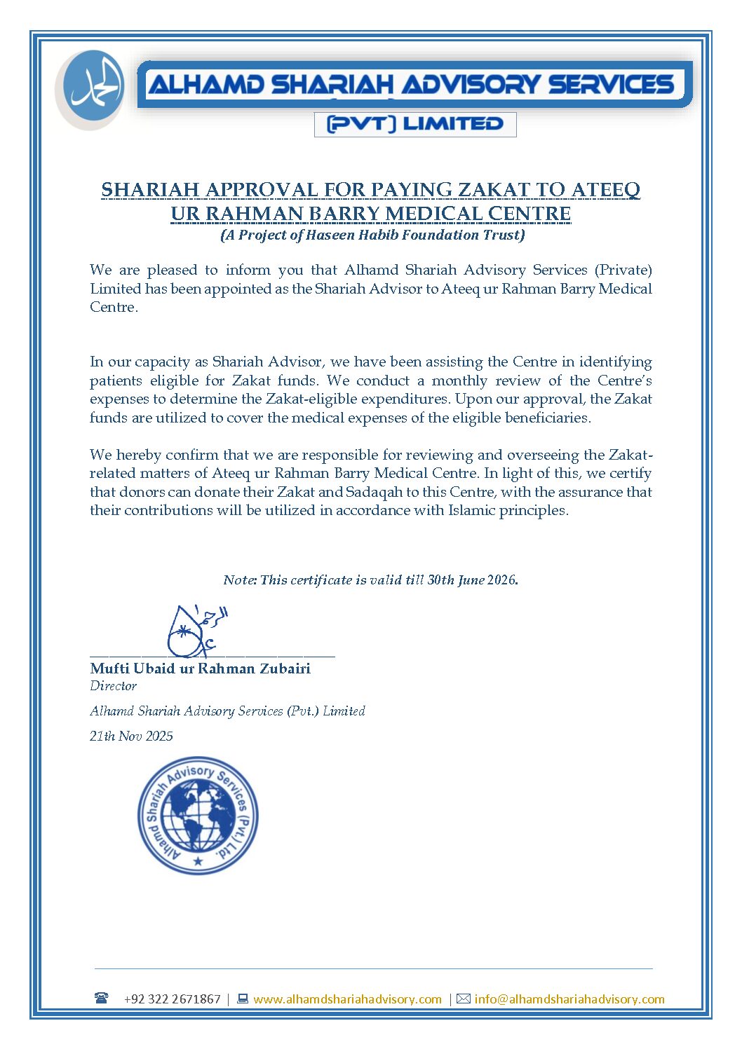 It is with great pleasure that we announce the inauguration of the Ateeq Ur Rahman Barry Medical Centre. This institution is dedicated to providing high-quality medical care to all members of our community, regardless of their financial means.